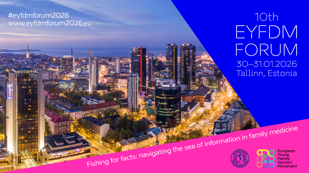 Den 30–31 januari 2026 samlas unga allmänmedicinare från hela Europa i Tallinn, Estland. Forumet bjuder på föreläsningar, workshops och erfarenhetsutbyten kring evidensbaserad praktik, desinformation och digital hälsa – under temat “Fishing for facts: navigating the sea of information in family medicine”.